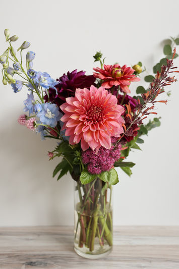 The fall subscription happens at the peak of flower season and features all the beautiful late-summer flowers. This season brings our personal favorite flower, the dahlia. Fall bouquets will feature dahlias, lisianthus, zinnias, hydrangea, eucalyptus, fragrant basil, and many beautiful fall textures! The Fall Flower Subscription starts August 19.